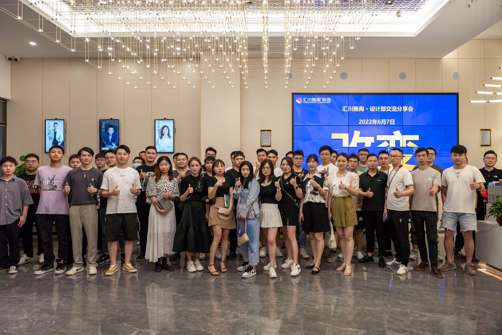 2022年6月7日在匯川雅閣裝飾旗艦店舉行了設計師分享交流大會,設計部近50位設計師共同合唱匯川雅閣司歌。