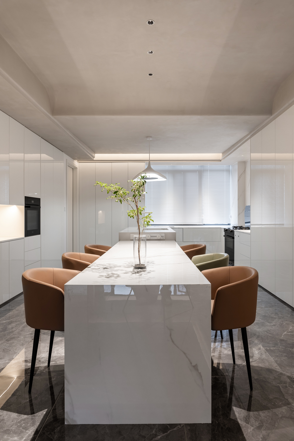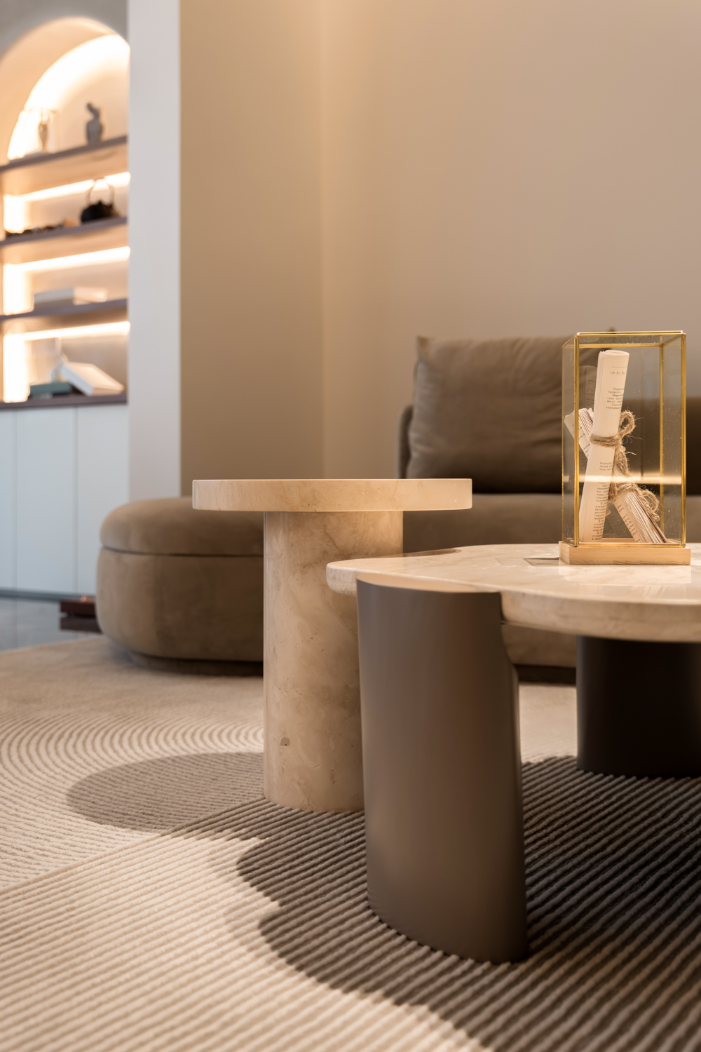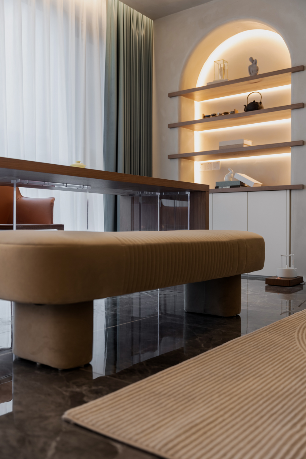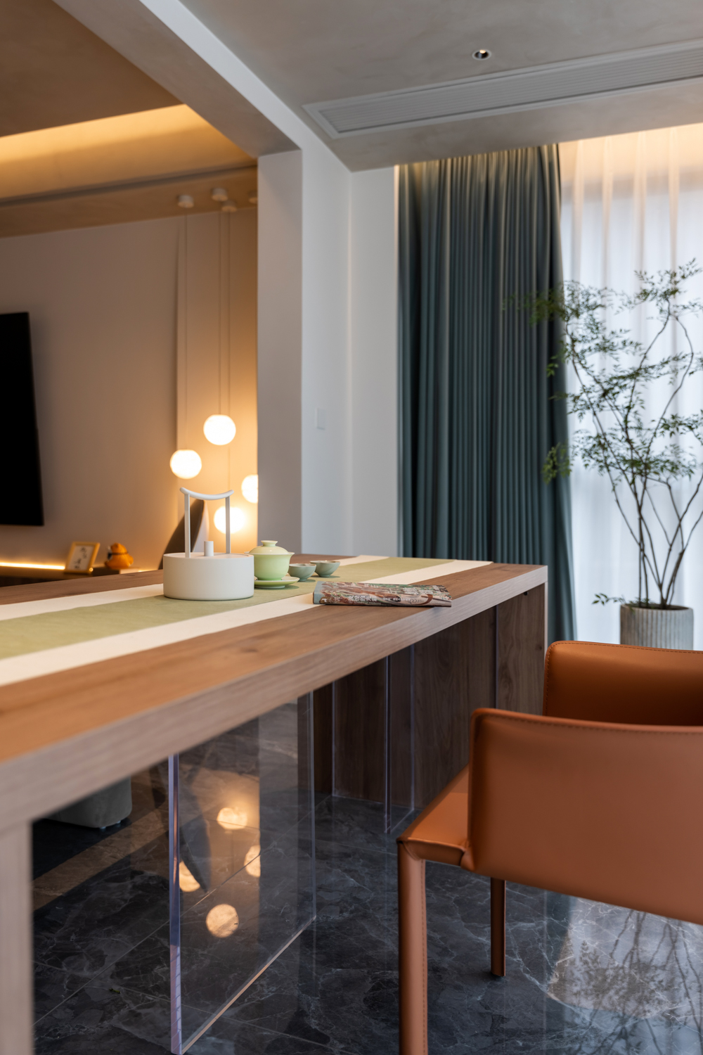 客廳,陽臺(tái)空間連接,以大客廳的形式呈現(xiàn),其中小細(xì)節(jié)里面帶一些詫寂的元素在里面。
